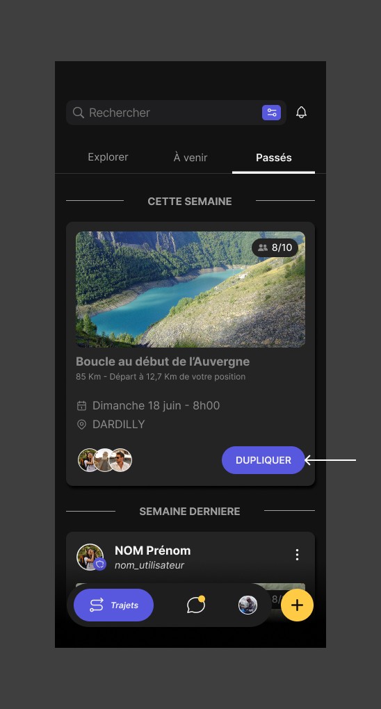 La duplication ne copie pas les participants, ni les messages de l’ancien trajet.