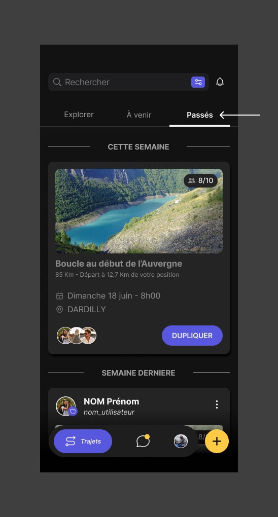 Accédez à l’onglet "Trajets", puis sélectionnez "À venir" ou "Passés".