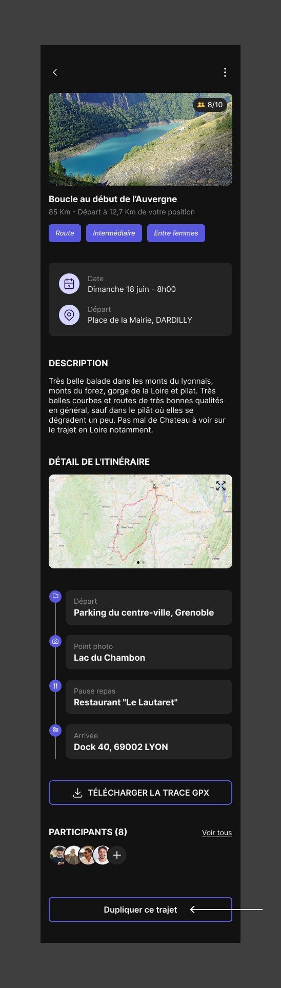Vous repartez d’un nouveau trajet tout frais, prêt à accueillir de nouveaux motards (ou les mêmes !). nouveau ceux que vous souhaitez voir revenir, via la messagerie ou le partage de lien.