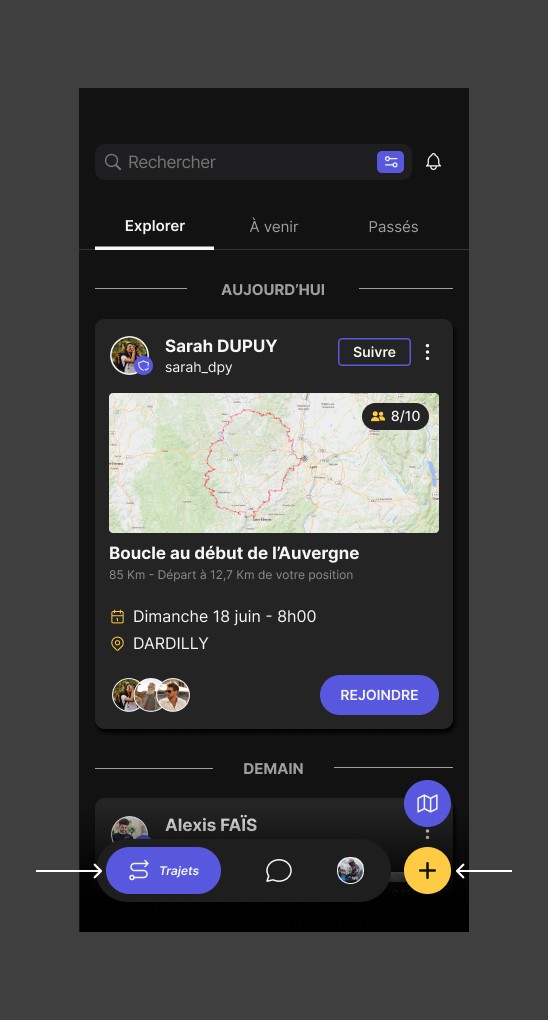 Les autres membres de la communauté pourront alors voir votre trajet, vous rejoindre si le projet les intéresse et vous poser des questions via la messagerie intégrée.